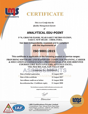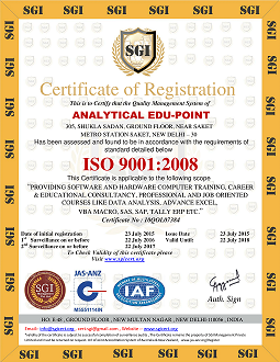 While working in company, I realized that I need to learn new things to increase the graph of my career. I called a lot of institutes but finally I got the satisfaction from Analytical Edupoint. I joined Analytical Edupoint for Advance Excel & VBA-Macro. Anand sir describe me around 150 formulas that I used can be used in different ways. I learned VBA automation and Advance Excel. Then I got job with 30% hike in my salary. Now I am very happy and all credits go to Analytical Edupoint.